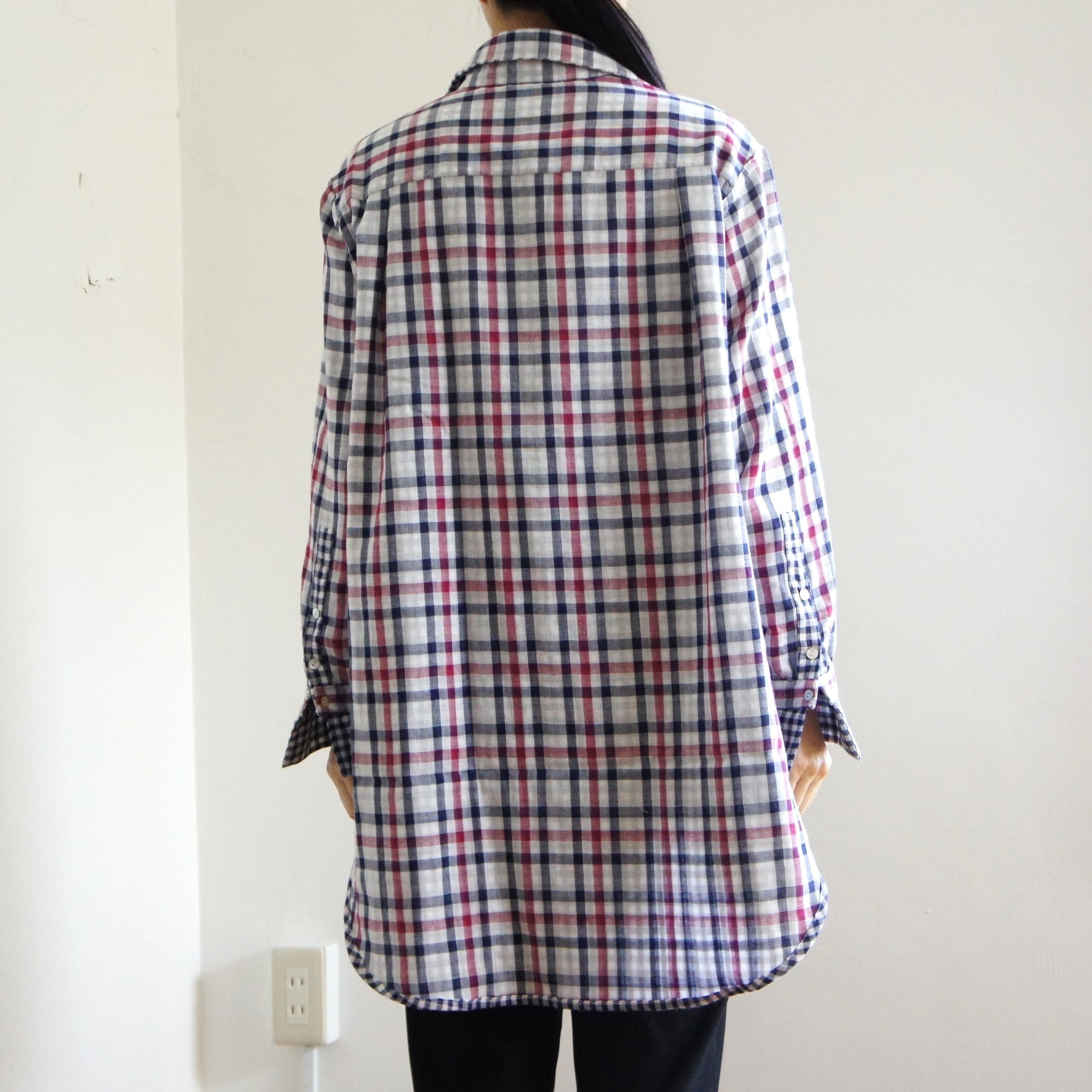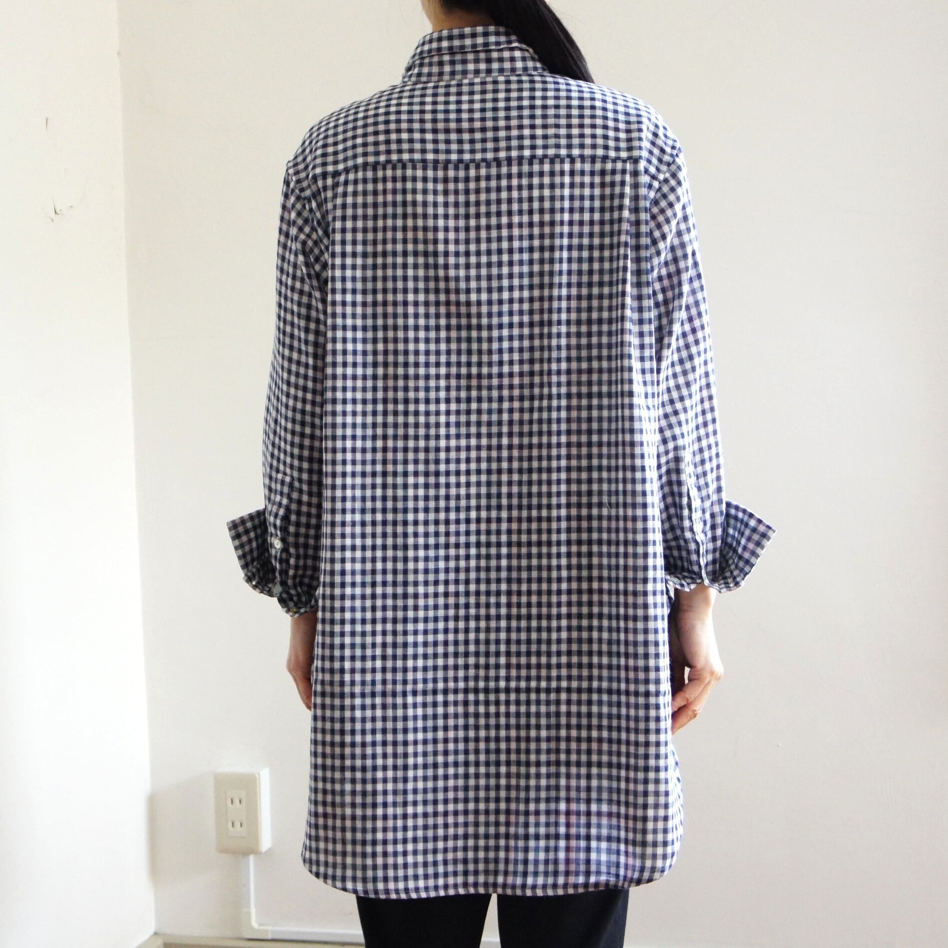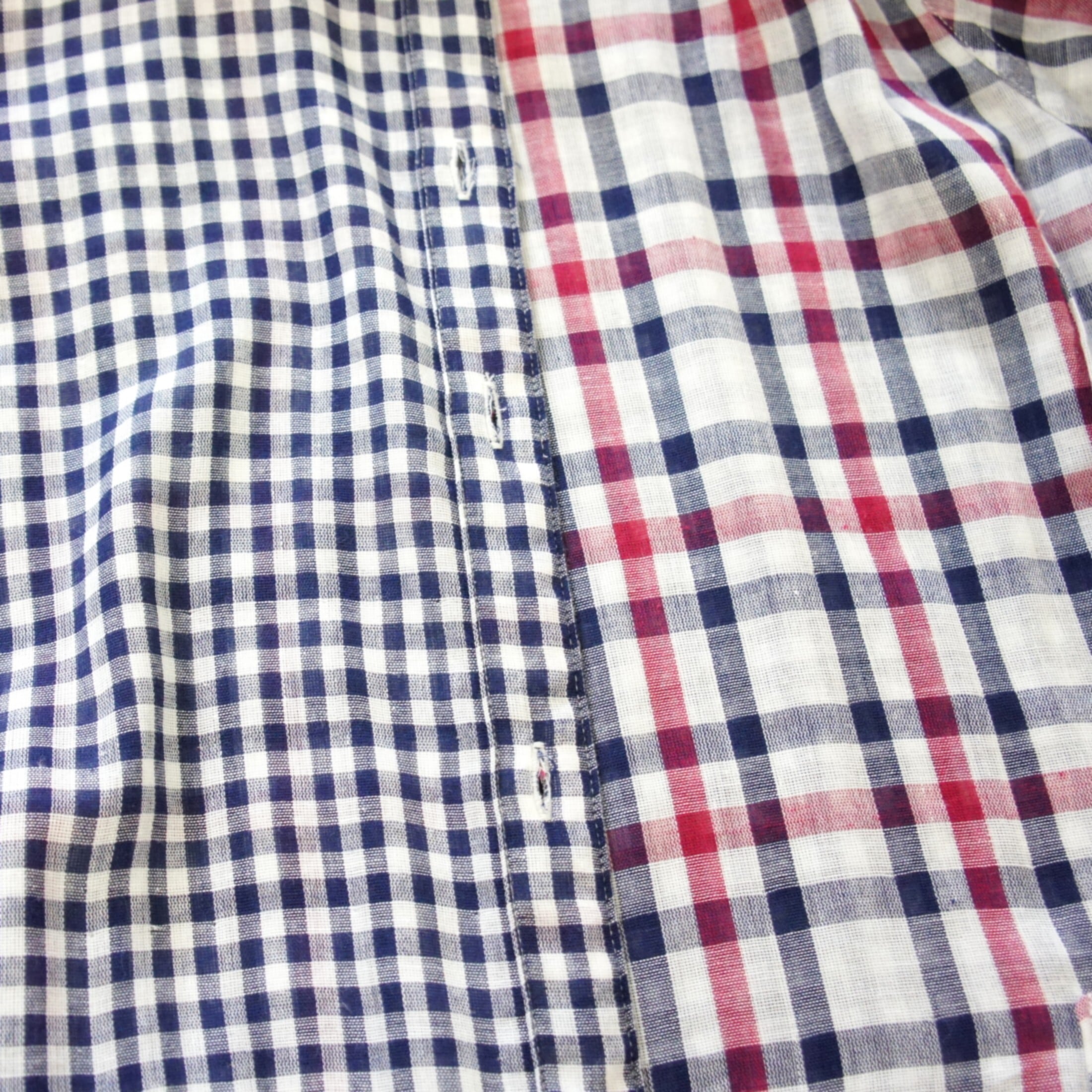 綿ボイルを裏表で張り合わせた生地で赤系とネイビー系の2色をリバーシブルで着れるようにデザインしました。軽い風合いと清涼感あふれる綿ガーゼ素材でサイドを切り込んだ曲線の裾で軽快でしなやかな印象のデザイン。