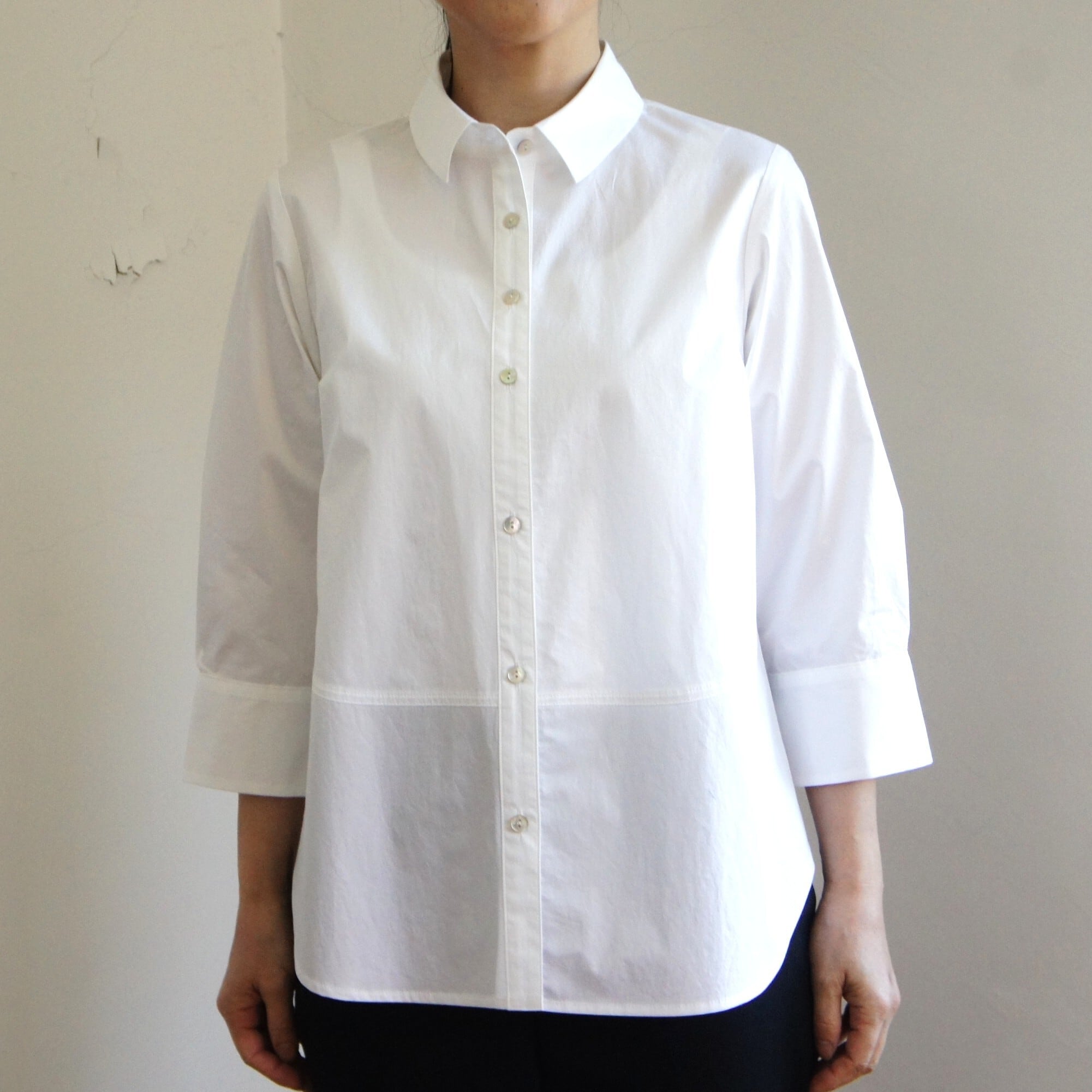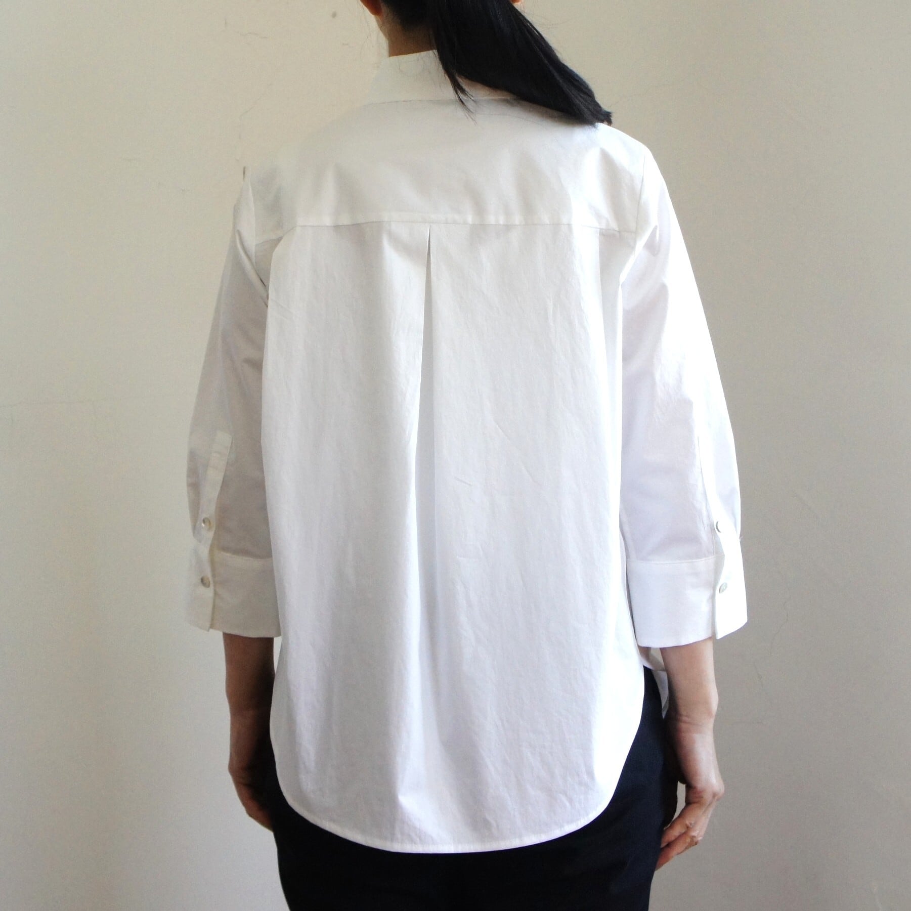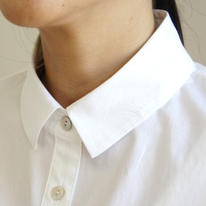 小さめの衿と七分袖でより軽さと甘さをミックスさせたシャツ。