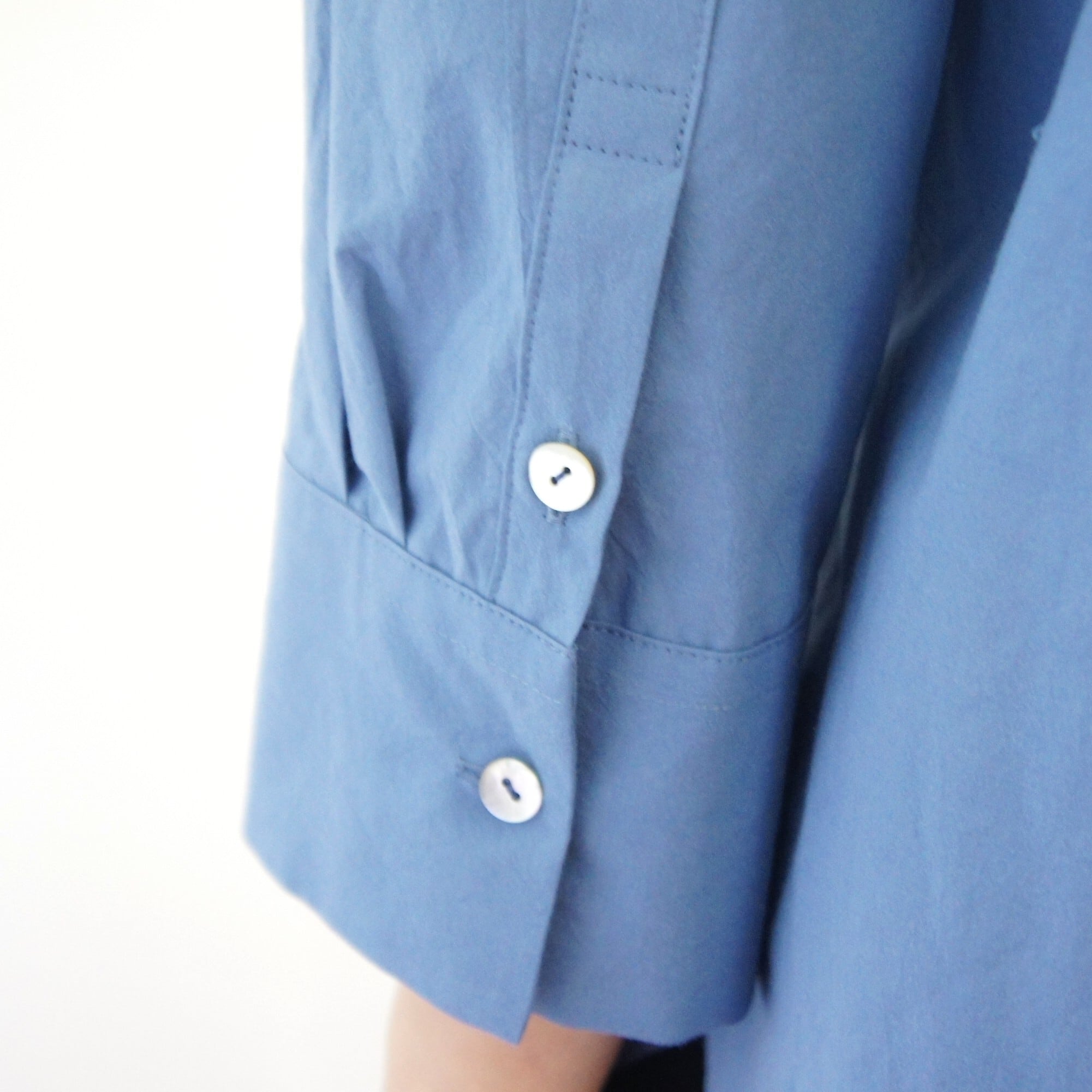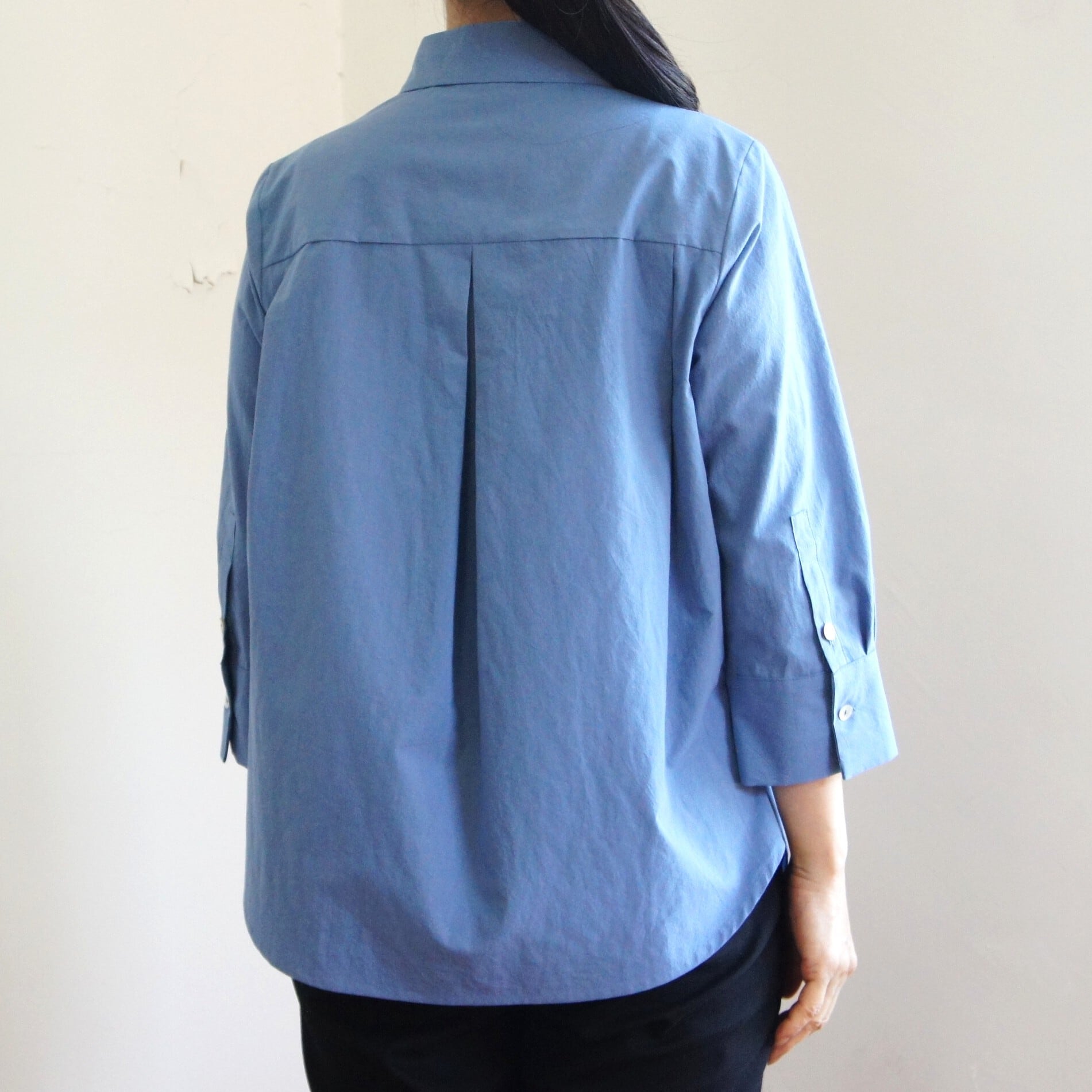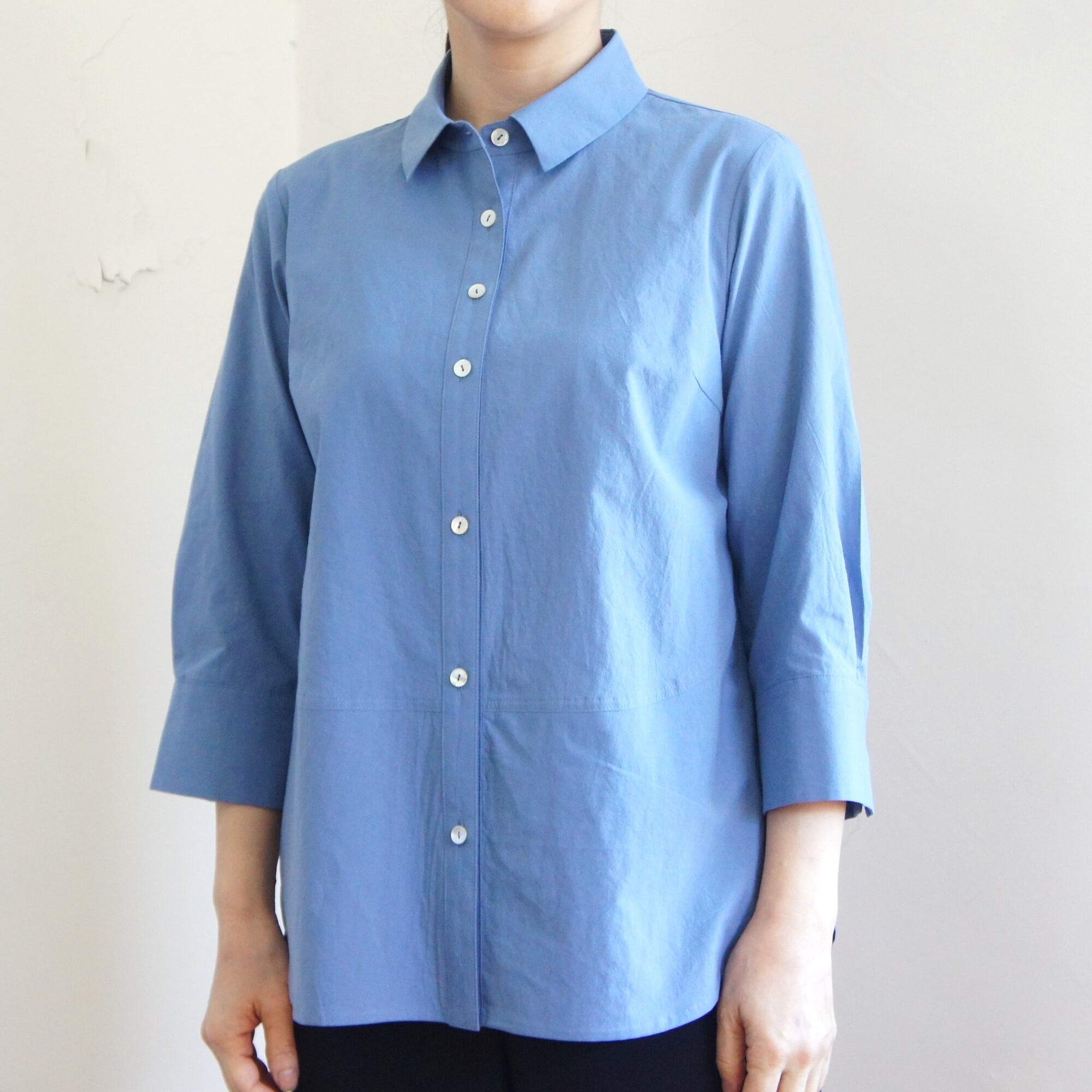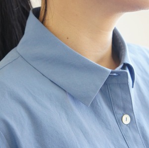 小さめの衿と七分袖でより軽さと甘さをミックスさせたシャツ。