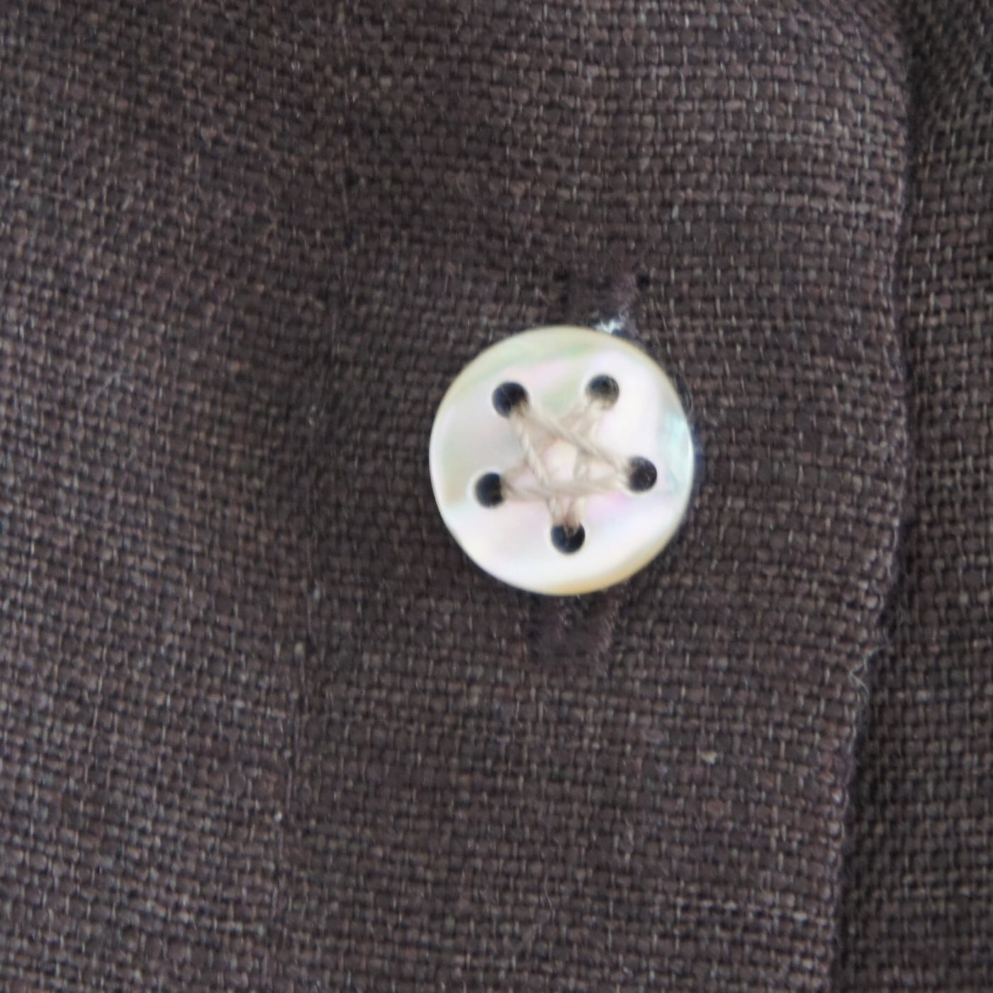 近江産のリネン100%。ダークブラウンの深みのある色合いとハリ感と落ち感をミックスさせたオリジナル素材。